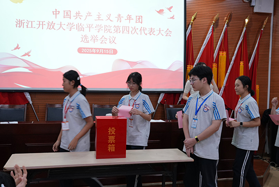 随后,大会通过发票、写票、投票、验票、计票各个环节,代表充分酝酿并上台投票。监票人检查票箱并封箱,并由计票人到指定地点验票、计票。选举产生共青团浙江开放大学临平学院第四届委员会委员,分别为:刘非、刘栩吟、丁一兰、朱亚平、牛静博、吴越、钱胡玥、晏欣、鲁平。