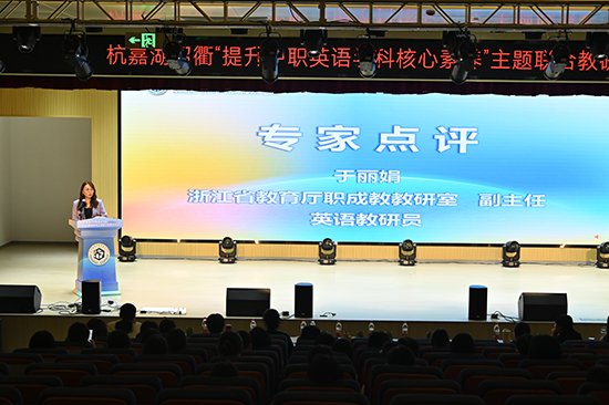 浙江省教育厅职成教教研室副主任、英语教研员于丽娟,杭嘉湖绍教研部门相关负责人以及中职英语教研员,高等教育出版社外语出版事业部副主任毕永军、首席编辑黄娜等领导嘉宾莅临现场指导。活动安排了专家讲座、公开课、说课展示、师生英语戏剧表演和无生课堂比赛,内容丰富,精彩纷呈。
