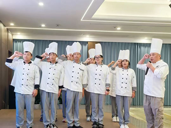 随后,烹饪专业教师陆志方带领全体学生庄严宣誓,明确职业使命,承诺恪守职业道德,追求技艺精进,弘扬饮食文化,将个人发展融入行业进步,努力成为行业标杆。誓言充满了学生们对烹饪事业的敬畏与追求,也标志着他们正式迈出职业成长的重要一步。