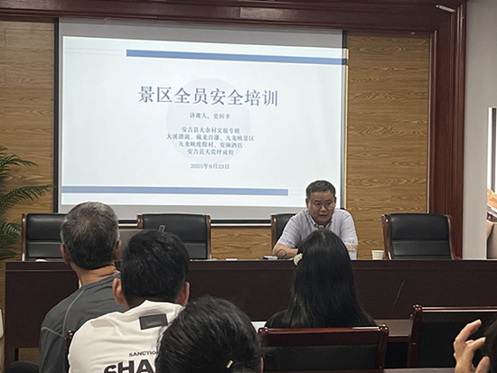 9月23日下午3时,在今年国庆“十一”黄金周到来前夕,由安吉县大余村文旅专班和安吉县社区教育学院天荒坪分院(天荒坪成校)联合开展的藏龙百瀑等景区(酒店)员工全员安全培训在大溪村村委会三楼会议室举行。