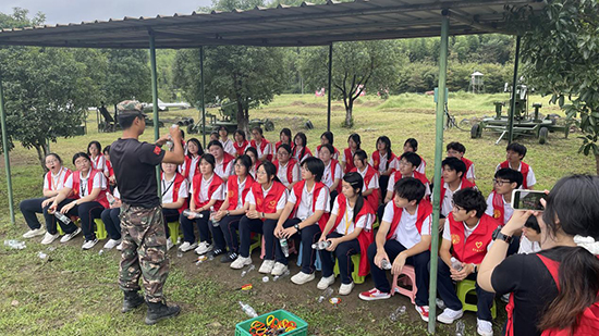 在戎创军校训练场上,同学们体验了模拟野战炮射击、火箭发射观摩、装甲车乘坐等军事项目。在教官的指导下,大家认真学习军事知识,亲自操作体验,感受国防科技的进步与强大。“预备,放!”随着口令下达,模拟炮声响彻训练场。体验现场,钱同学表示:“这次体验让我深刻体会到强国必须强军,军强才能国安的道理。”