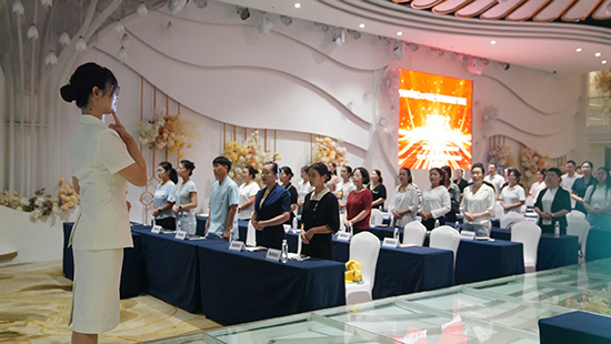“如果你带着客人见领导,优先介绍哪一位?”“同样是握手礼,一线员工和领导的执行方法可不一样哦!”课堂上,一线服务员、领班、主管等各岗位的服务特点被逐一剖析,沈老师精准回应一线员工在实际工作中遇到的个性化问题。