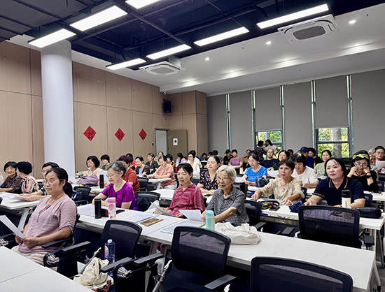 书法教室内,墨香弥漫,银发学员们凝神静气,在老师的指导下从容运笔,一点一划间尽显汉字的韵致与人生的沉淀。形体舞班里,伴随着舒缓优美的音乐,学员们身姿舒展、步履轻盈,在节奏中找回身体的活力,展现出中老年人特有的优雅与从容。而声乐班精心排练的《浦沿潮涌》更成为了一道亮丽的风景线,这首承载着浦沿精神与文化的歌曲,在银发学员的歌声中焕发出别样生机。
