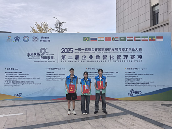 近日,2025一带一路暨金砖国家技能发展与技术创新大赛“企业数智化管理”全国总决赛在山东外事职业学院隆重举行。来自全国本科、高职、中职院校共100余支队伍同台竞技,角逐该赛项最高荣誉。海盐职业教育中心参赛队虞思远、俞懿、陶越中三位同学,在该校杜宇风、王佳军两位老师的指导下,凭借扎实的专业功底与出色的协作能力,斩获中职组第二名,喜获全国银牌。