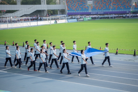 随后国旗队、校旗队以及各方阵队伍,他们踏着铿锵有力的步伐,朝气蓬勃地步入会场。青春的少年们手握旗帜,伴随着激昂的旋律,他们昂首阔步,展现出无尽的活力与风采。