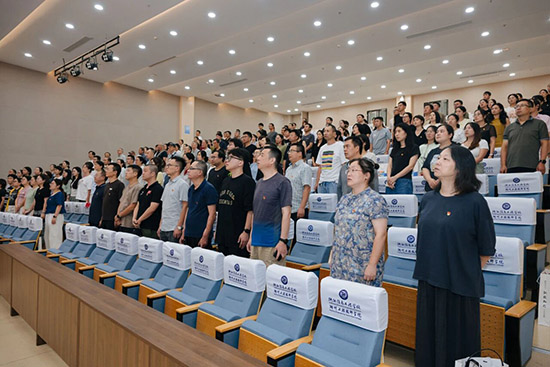 下午3时,庄严的国歌在会场内激昂奏响,拉开了大会的序幕。全体与会人员起立,奏唱国歌。