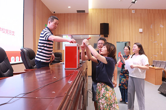 主题党日过后,与玉环市中等职技校党总支组织开展党总支委员会换届选举党员大会,为党组织注入新鲜血液和活力。全体党员认真聆听关于换届选举办法以及候选人员名单,严格按照选举程序,以不记名的方式进行选举投票。整个选举过程规范、有序、公正,充分体现了党内民主和全体党员的意志。