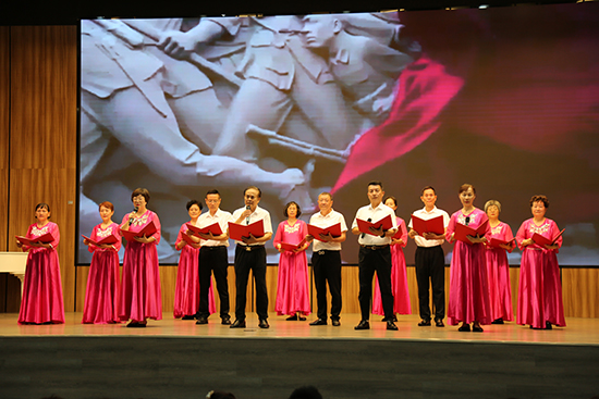 演出围绕“山河记”“英雄丰碑”“传承之路”三大篇章渐次展开。舞台上的银发表演者平均年龄65岁,却以饱满的热情,将烽火岁月中的故事一幕幕重现。