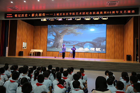 国庆临近,一场别开生面的“行走的红色课”在杭州市娃哈哈小学温情开讲。在上城区文化特派员、清波街道社区学校负责人陈老师的携手下,上城区社区学院艺术团与清波街道的银发艺术骨干们共同呈现“铭记历史·薪火相传”纪念抗战胜利80周年专场演出,为同学们带来融合历史教育与爱国情怀的艺术体验。
