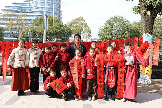 惠民服务:自2021年起连续五年自费购置笔墨纸砚,书写春联赠予市民累;送出5000余幅,惠及衢州30余个社区。