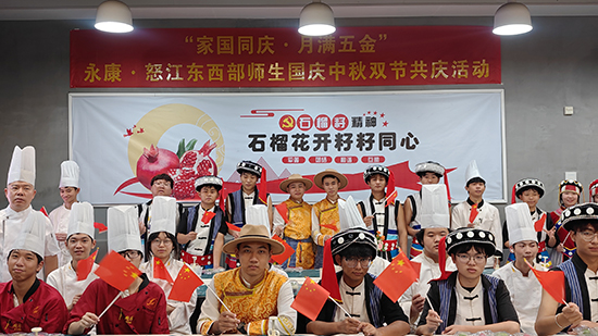 同时,为迎国庆中秋,学校还开展了“家国同庆 月满五金”各族师生共制月饼活动,只见云南傈僳族的花纹样式、贵州彝族的馅料配方与永康传统月饼工艺碰撞交汇,香甜气息中满是民族团结的暖意。而夜幕下的现代服务学院民族音乐节上,各民族舞蹈与青春之歌交织共鸣,融汇成 “各美其美,美美与共” 的深厚情谊。