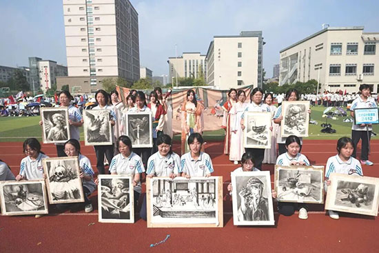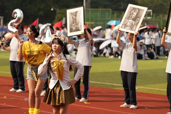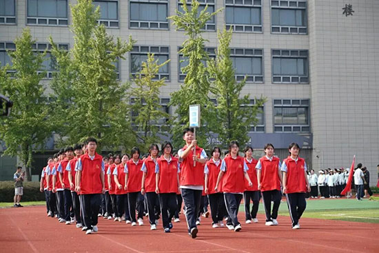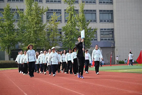 伴随着雄壮的《运动员进行曲》,在国旗队、会徽队和红旗队的引领下,学院46个班级的运动方阵英姿飒爽、精神饱满地有序入场。