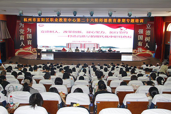 为深入学习贯彻习近平总书记关于人工智能与教育发展的重要指示精神,全面落实立德树人根本任务,8月22日至23日,富阳区职业教育中心隆重举行第二十六轮师德教育暑期专题培训暨2025学年第一学期开学工作会议。本次培训组织全体教职工开展集中学习与专题研讨,进一步统一思想、凝聚共识,为新学期各项工作高质量开展奠定坚实的思想基础和队伍保障。