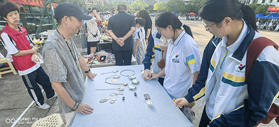 “叮铃铃——”,10月10日下午3时,瑞安市职业中等专业教育集团学校(以下简称瑞职集团校)的放学铃声刚落,原本安静的校园小广场瞬间热闹起来。同学们快步汇聚于此,目光被广场两侧琳琅满目的摊位吸引——一场兼具观赏性与互动性的“民间工艺盛宴”暨非遗文化进校园活动正拉开帷幕,用指尖上的技艺为师生们带来沉浸式文化体验。
