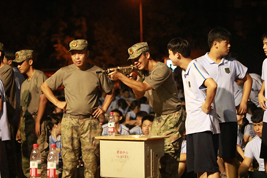 恰逢抗战胜利80周年,军训期间特别开设红色教育课。综合报告厅内,同学们聆听老兵讲述烽火岁月,触摸历史照片中泛黄的弹壳;教室里,学校组织师生分批观看了《地道战》《建国大业》《建军大业》等经典红色影片。