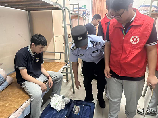 城东派出所由杨金龙警官带队,27名干警参与此次活动。在学生干部的协助下,由相关班主任带队,干警们对学生寝室进行了认真检查,特别是对于衣柜、皮箱等容易藏匿物品的地方进行了逐个检查。