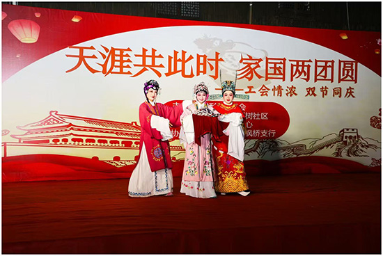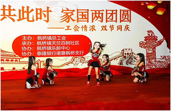 9月30日晚,诸暨市枫桥镇百树社区党群中心广场灯火璀璨、人声鼎沸。舞台中央“天涯共此时 家国两团圆”的字样在灯光下格外醒目,由枫桥镇总工会主办、枫桥镇天竺百树社区承办,“枫桥镇乐龄中心”“泰隆银行诸暨枫桥支行”协办的“工会情浓 双节同庆”晚会在此隆重启幕。