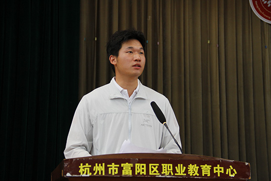 优秀校友代表刘金龙通过充满感染力的发言,以其个人成长经历为学弟学妹树立了生动的榜样。他将富阳职教中心比作助力重生的“复活点”、装备精良的“军火库”和对接社会的“前哨站”,深情回顾了母校为他提供的无限可能。他通过抓住竞赛、升学、特长发展等机会,从职教学子成长为国家公职人员,用实际行动诠释了“技能成就梦想”的真谛。刘金龙还列举了其他校友在知名企业崭露头角、攻读硕士学位的成功案例,证明职教生同样能在社会大舞台上大放异彩。他的成长历程生动展现了职业教育的发展前景,激励在场学子珍惜资源、磨练技能,在职教沃土中闪耀属于自己的光芒。