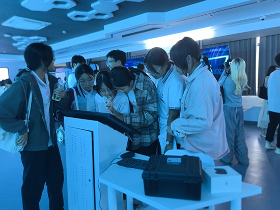 在实训基地参观环节,同学们先后走进智慧新零售管理、智慧零售体验、元宇宙数字商业体验空间、智慧农场定制化电商等实训区域。先进的设备、逼真的商业场景模拟,让同学们直观感受到电商行业的前沿技术与运营模式,纷纷驻足观察、积极提问。