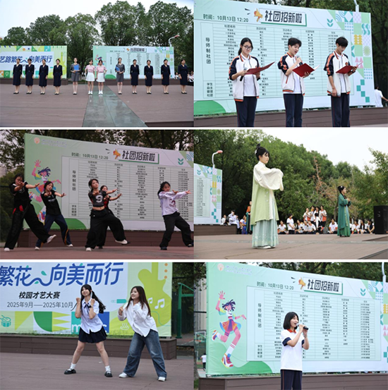 为进一步加强校园文化建设,充分展现社团的蓬勃活力,浙江省湖州艺术与设计学校于10月13日在虹广场举行社团招新活动。此次活动共计21个社团参与展示,吸引了众多学子的目光。