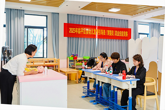 为深入贯彻落实国家关于加强技能人才队伍建设的重要指示精神,加快培养高素质、专业化的婴幼儿照护服务人才,10月18日至19日,由临平区人力资源和社会保障局主办,浙江开放大学临平学院联合临平区卫生健康局、临平区商务局共同承办,杭州嘉鸿职业技能培训学校协办的“2025年临平区婴幼儿发展引导员(育婴员)职业技能竞赛”顺利举行并圆满落幕。全区共180名从业人员踊跃参与,展现了婴幼儿照护行业的蓬勃生机与专业风采。
