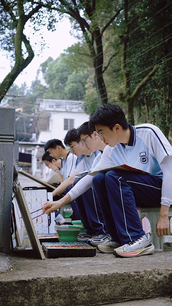 十月的温州,夏日的溽热尚未完全退场,秋日的清朗已悄然浸润。在这夏秋交织的独特光色里,温州华侨职业中等专业学校24工美1班的同学们,在温州理工学院祁百成教授、工美教研组组长叶颖颖及黄舒曼老师的联合指导下,在景山展开了一场风景色彩写生实践活动。