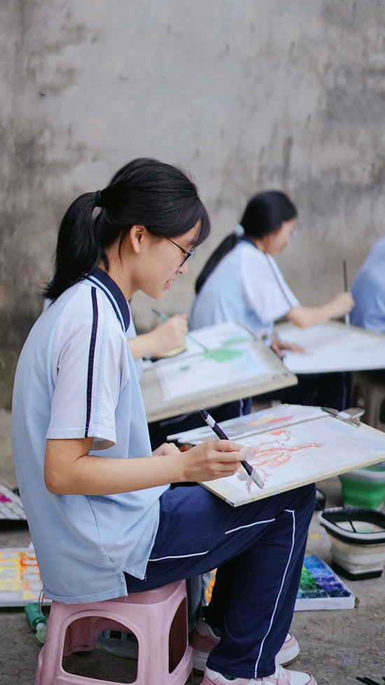 本次“色彩风景”写生课程作为继高一阶段色彩启蒙合作教学之后的第二模块延续,特邀高校博士与华侨职专教师共同授课,实施6周风景色彩课堂“双师共导”模式,祁博士将课程分成了“视角捕捉、色彩关系归纳、光色关系的把握、画面关系塑造”四大模块训练,最后在“写生实践”中实现综合提升。本次课程推进中职至本科七年一贯制教学体系的深度融合与有效贯通,进一步彰显学校在长学制艺术人才培养方面的专业优势。(叶颖颖)