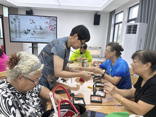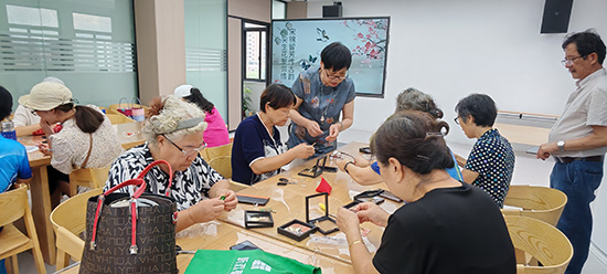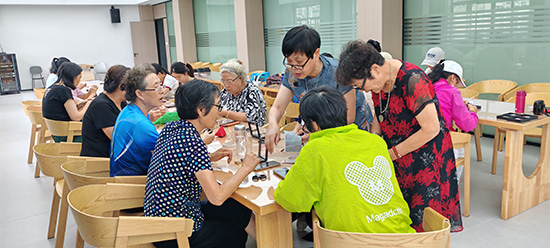 在专业手工老师的耐心指导下,居民们纷纷化身“设计师”,精心挑选自己心仪的图案和布料。从最初的构思设计,到小心翼翼地剪裁布料,再到专注地缝合边缘、粘贴固定,每一个步骤都凝聚着大家的巧思与耐心。现场气氛热烈而温馨,大家互相交流制作技巧,分享配色心得,遇到困难时彼此帮助,完成作品时共同欣赏。方寸之间,指尖翻飞,原本零散的材料在居民们的巧手下,逐渐蜕变为一枚枚独一无二、充满个人风格的精致胸针。