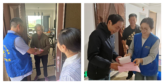 活动当天,社区工作人员带着软糯香甜、蕴藏“步步登高,健康长寿”寓意的糕点分组前往户籍老人家中。工作人员与老人们亲切交谈,仔细询问他们的身体状况和生活情况,叮嘱他们天气转凉,注意添衣保暖。一句句暖心的话语,一声声细心地嘱咐,给老人们带去了社区的关爱,让老人感受到社会大家庭的温暖。
