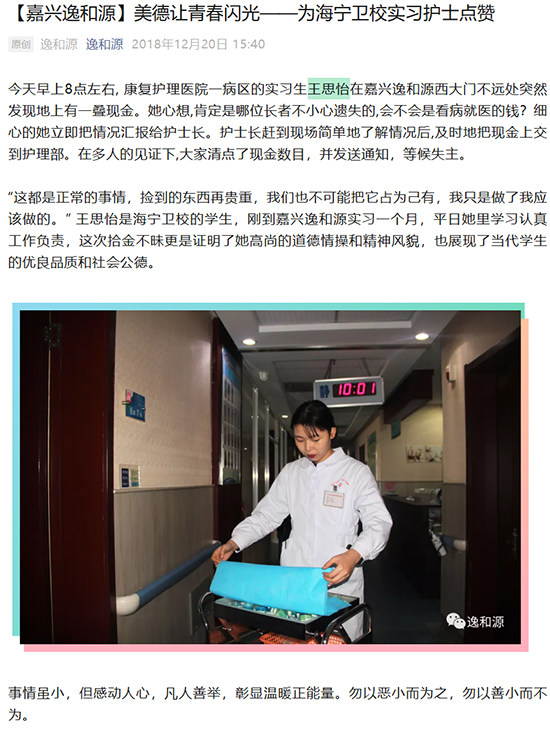 一滴水能折射太阳的光芒,一件小事能彰显品行的美丽。武同学、沈同学,你们“藏不住”的,不仅是这次的光荣事迹,更是海宁卫校学子融入血脉的善良与担当!为你们点赞!也期待涌现出更多这样的暖心故事!(付远清)