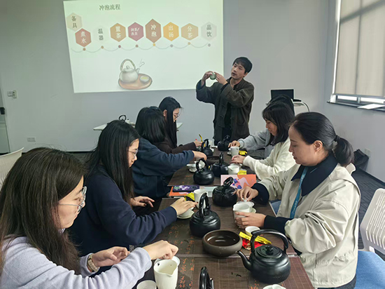 正值午餐过后,一杯杯温热的香茗,不仅驱散了职工们午后的困倦,更舒缓了他们平日里因高强度工作积累的职场压力。“平时工作节奏快,很少有机会静下心来喝茶,今天这堂茶艺课太及时了!跟着老师学泡茶、品茶香,感觉整个人都慢下来了,下午工作也更有精神了。” 泰林生物的职工李女士笑着说道。此次茶艺课程,不仅让职工们拓展了茶艺知识,丰富了精神文化生活,更在轻松的氛围中释放了压力,有效缓解了职场焦虑,进一步增强了职工的归属感与幸福感。