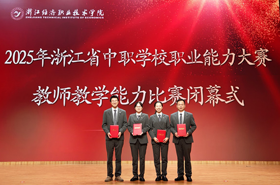 11月8日,2025年浙江省中等职业学校职业能力大赛教师教学能力大赛决赛在浙江经济职业技术学院圆满落幕。玉环市中等职业技术学校郑琰歆、林志、王金伟、蒋芳芳四位老师组成的参赛团队,凭借扎实的专业功底、默契的团队协作和出色的现场表现,一路过关斩将,成功进入省级决赛现场赛,并荣获专业课程组二等奖!