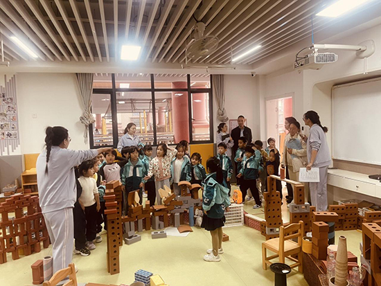 调研团队还现场观摩了“安的游戏”课程实施情况,各年级幼儿或独立操作、或组团协作,在自主游戏中快乐探索,教师则全程观察记录并在活动结束后与幼儿互动交流游戏体验。(诸暨市枫桥镇中心学校 孙文明)