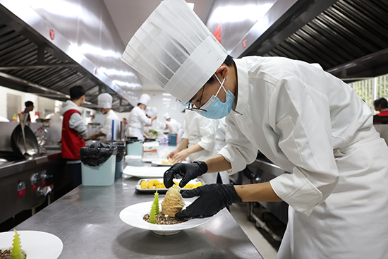烹饪:通过展示中式热菜、西式点心、果蔬雕刻、冷拼摆盘等多项技艺,既考验学生的基本功底,也强调创新意识与审美素养,通过技能实操与作品介绍全方位展示各自专业素养。