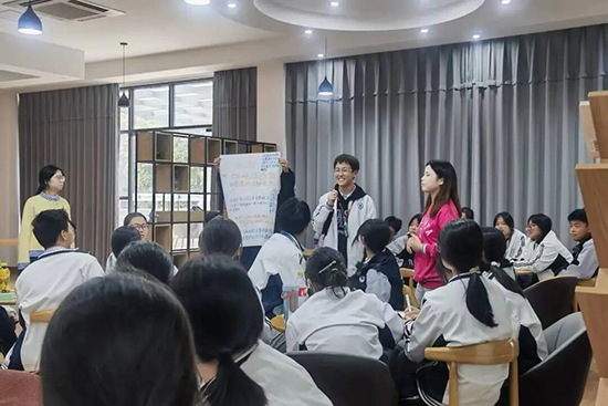 在参与式团体活动中,杭州师范大学同伴教育社的方舒怡和吴雨晴社长带领同学们探讨和学习“跟校园霸凌勇敢说NO”的相关知识和技能,浙江大学同伴教育社邓丹凌社长带领同学们学习和练习“预防性骚扰”的知识和技能。