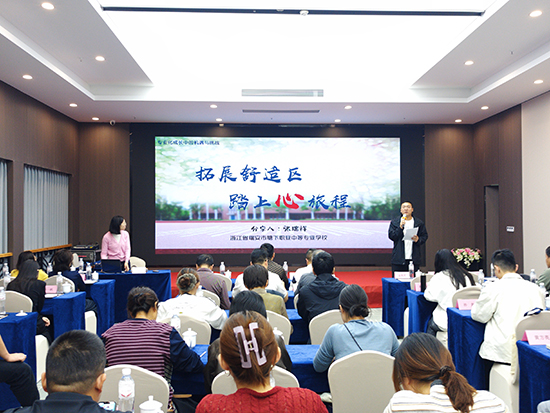 温州市瓯海职业中专集团学校副校长陈超超以《“瓯潮” 文化引领下的中职 “三瓯六潮” 德育模式探索》为题作专题讲座。她从 “理念与路径:以美立人”“实践与举措:各美其美”“辐射与传播:美美与共” 三个维度,系统分享了学校在德育工作中的探索历程与显著成效。讲座既有理论高度的深度剖析,又有具体案例的生动解读,引发了研修团队的强烈共鸣,大家纷纷表示对中职德育工作有了更清晰的思路。