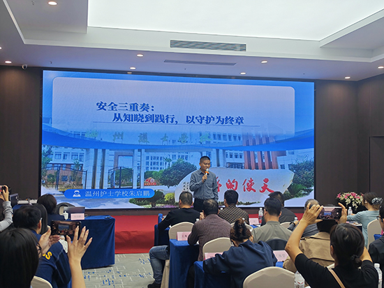 温州护士学校副书记朱启鹏(深耕德育与安全管理十余年)以 “学校安全管理与学生关怀” 为核心授课。他强调安全是学校首要工作,需全员参与,从军训、运动会、日常场景细化安全措施;还分享与家长沟通技巧、学生关怀方法,并解读安全相关法律法规,为学校安全管理筑牢防线。