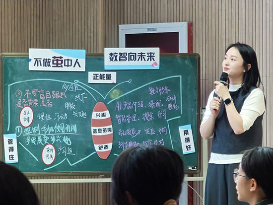 研修团队共同观摩了温州市瓯海职业中专集团学校班主任基本功大赛国赛选手金颖颖老师执教的主题班会课《不做中茧人,数智向未来》。课堂上,金老师以趣味化的互动设计、层层递进的引导逻辑,让学生深刻认识 “信息茧房” 对成长的局限,并鼓励大家主动打破认知 “舒适圈”,在多元探索中激发潜能、拓展边界。这堂兼具趣味性与启发性的班会课,为在场班主任提供了 “可复制、可落地” 的班级教学实践范例。