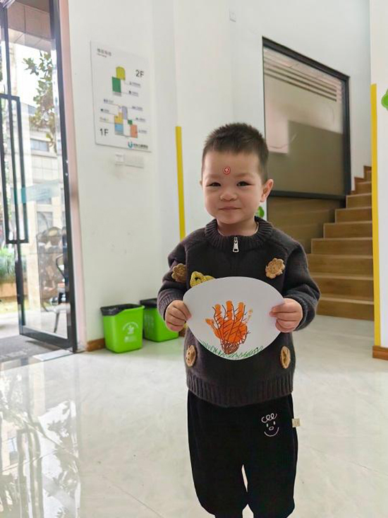 活动现场,老师们早已提前备好橘红、金黄等秋日色调的印泥与画纸,以耐心引导孩子们开启创意手工之旅。孩子们稚嫩的小手蘸取印泥,在纸上轻轻一按,一片片形态各异、色彩鲜活的“秋叶”便跃然纸上;家长们则在旁细心协助,和孩子一起用画笔勾勒细致的叶脉,在画布下方添绘出生机盎然的绿意草地。简单的操作里,孩子们直观感受着秋天的绚烂色彩;亲子协作间,想象力与创造力也在欢声笑语中悄然绽放。