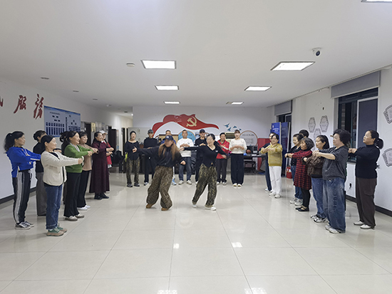 “汉服不仅是衣服,更是流动的文化符号。”排练伊始,许涵老师先以图文结合的方式,向学员们讲解情景剧的核心脉络——以秦汉的曲裾、唐代的襦裙到明清的袄裙为线索,用情景演绎串联起汉服的发展历程。针对老年学员的特点,她将动作拆解为“抬手稳、转身缓、眼神柔”三个要点,亲自示范汉服行走时裙摆的律动技巧,手把手纠正学员们的站姿与手势。