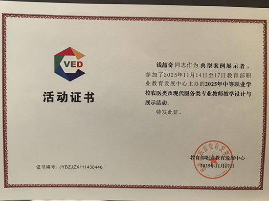 一份荣誉,凝聚着个人的深耕细作,更彰显着学校的育人成效!钱喆奇老师的获奖,是学校坚持“以赛促教、以赛促研、以赛促改”的生动实践,更是学校强化师资队伍建设、深耕职业教育内涵发展的有力见证。