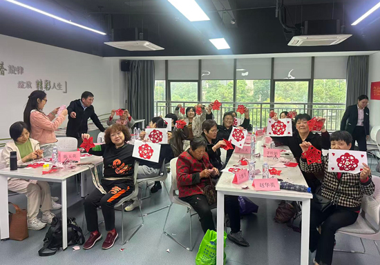 培训中,居民们的学习热情持续高涨。大家从基础折叠学起,认真勾勒图案,小心翼翼裁剪,遇到难题时要么邻里间相互探讨,要么主动向老师请教,现场氛围热闹又温馨。不一会儿,象征吉祥的生肖剪纸、寓意美满的福字窗花、充满江南韵味的水乡剪影、灵动鲜活的花卉纹样等作品纷纷出炉,每一幅都饱含创意与巧思,欢声笑语弥漫在各个社区课堂。