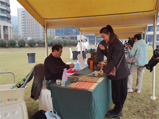 活动现场,三大安吉非遗技艺同台亮相,形成了一道亮眼的文化风景线。除了备受关注的非遗竹编,细腻灵动的非遗石画也吸引了大批市民驻足——画师以石为纸,用色彩勾勒出山水、花鸟,让普通的石头拥有了文化温度;而色彩绚丽的非遗畲族彩带编织更具互动性,市民们在传承人指导下,亲手穿梭丝线,感受畲族文化中蕴含的匠心与祝福。三种技艺各有特色,共同为市民打造了一场可看、可触、可体验的非遗盛宴,不少家长带着孩子沉浸式参与,在动手实践中加深了对传统文化的认知与喜爱。