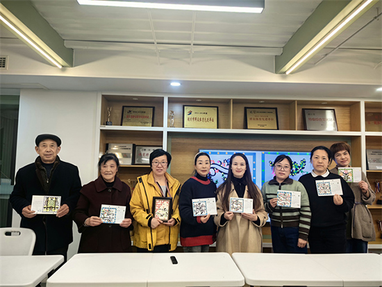 两个多小时的活动很快接近尾声,学员们纷纷展示自己的成果:有的剪了鲜活的瓜果,仿佛能闻到果香;有的剪了绽放的牡丹,花瓣层层叠叠尽显娇艳;还有的将“丰收”与“繁花”元素结合,创作出充满生活气息的场景画。大家拿着自己的作品互相拍照留念,不少人还主动加了蒋娟老师的微信,追问后续有没有进阶课程。