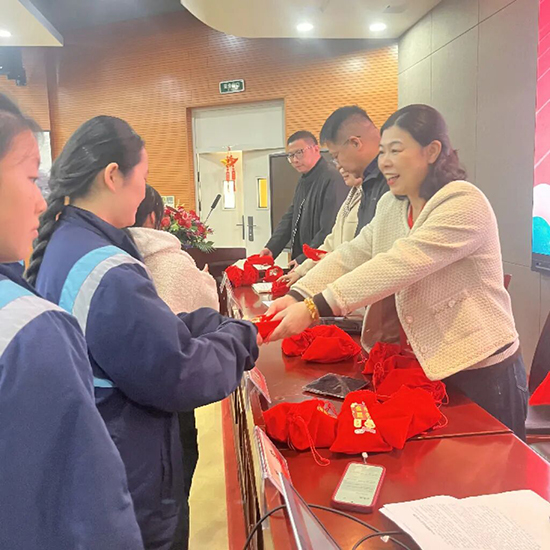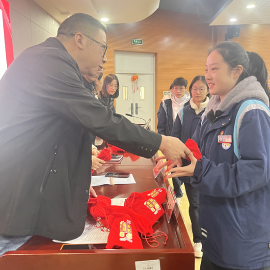 仪式中最温暖的一幕莫过于“能量传递”环节。学院领导亲手为每位高三学生送上精心准备的“能量包”——红色包装寓意“鸿运当头”,内含美好祝愿,寄托着“一举高中、金榜题名”的殷切期望。接过礼物的瞬间,学子们脸上洋溢着感动与自信,这份来自学院的深情支持,将化作他们奔赴考场的强大底气!