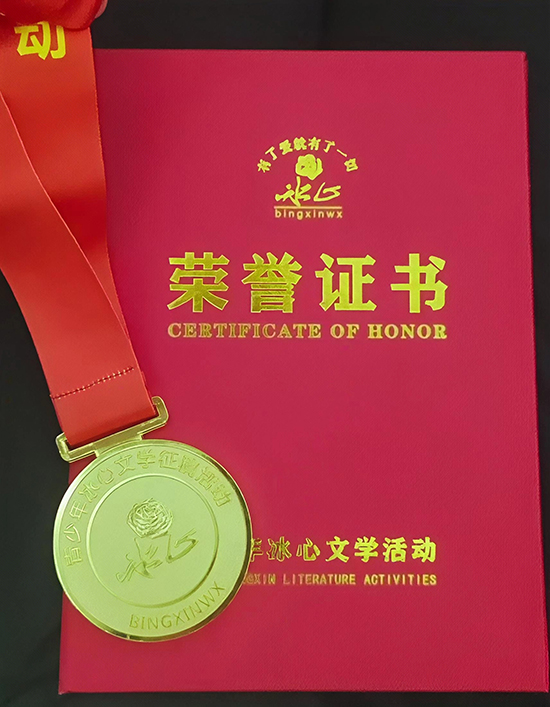2024年8月,荣获第十九届“青少年冰心文学”金奖;