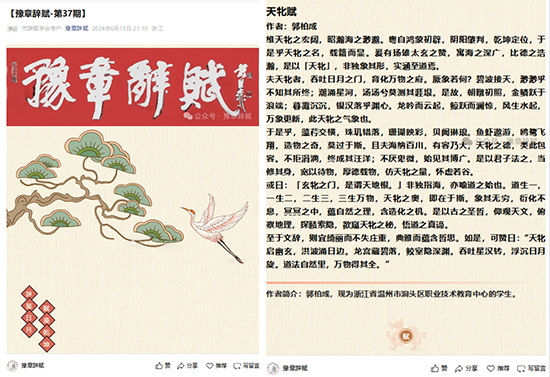 2024年6月,骈文《天牝赋》发表于《豫章辞赋》;