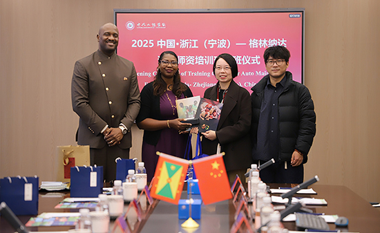 多年来,在国家职业教育服务“一带一路”倡议的引领下,鄞州职高持续拓展国际合作,成功开办汽修专业“中德”合作试点班,先后接待20多个发展中国家的职业教育考察团来访交流、开展培训。其中,学校与格林纳达玛丽秀社区大学的合作已近十载,双方始终携手共进,聚焦师资培养与技能人才共育,推动合作走深走实,也为中格两国的人文交流与友谊注入了持续动力。