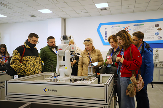 随后,双方就课程结构、学生实习实践等问题展开交流,对学校崭新的设备设施感叹,表示祝贺。