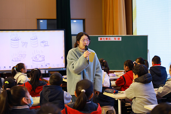 在夹浦镇中心小学,以“立足课堂教学规范,探索量规设计使用”为主题,通过开展课堂展示活动。长兴县夹浦镇中心小学郭仙哲老师执教《一起“趣”测量》,引导学生通过多元工具测量实践,在自评、互评与师评的互动中掌握度量知识,同步提升评价素养;长兴县实验小学顾文斌老师的《曹冲称象》课堂,借助评价量表实时跟踪学生学习表现,通过小组称重实践培养量感与推理意识,让评价贯穿教学全过程。